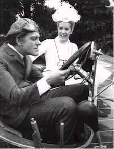 From the United Artists Pressbook Crackpot inventor Caractacus Potts (Dick Van Dyke) buys a dilapidated car called Chitty Chitty Bang Bang and drives to the seashore with his two children Jeremy (Adrian Hall), Jennifer [Jemima] (Heather Ripley)--and Truly Scrumptious (Sally Ann Howes), the beautiful daughter of Lord Scrumptious (James Robertson Justice). On the beach, Potts tells a pirate story, weaving into it a tugboat that appears on the horizon. It is not a tugboat, he says, but the yacht of evil Baron Bomburst (Gerte Frobe), who has come to steal the car. Mistaking the children's eccentric Grandpa (Lionel Jeffries) for Potts, the Baron kidnaps him.